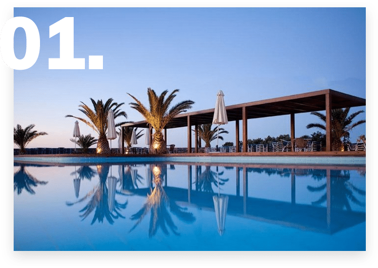 Beautiful hotels on the rocky shores of Greece.